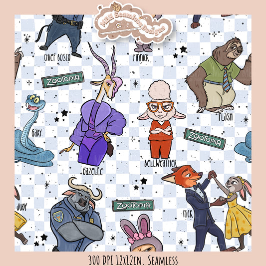 Nick & Judy Romance Seamless Pattern // PNG // Assorted Colorways