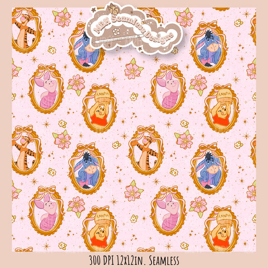 Bear & Friends Framed Floral Seamless Pattern • Assorted Colorway Options