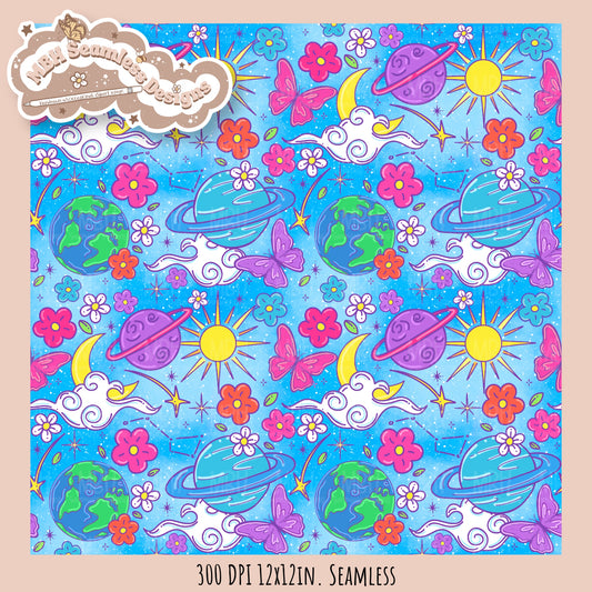 Bright Galaxy Floral Seamless Pattern Multiple Colorways