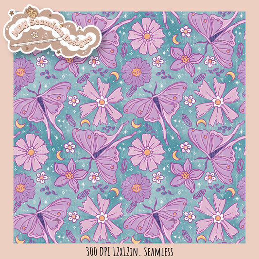 Starry Night Floral Luna Moths Seamless Pattern // PNG// MULTIPLE COLORWAYS