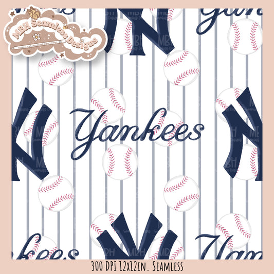 Yankees Baseball Stripes Seamless Pattern