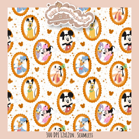 Coquette Framed Mouse and Friends Seamless Pattern • PNG • Assorted Colorway Options