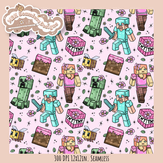 Girly Minecraft Seamless Pattern MULTIPLE COLORWAYS