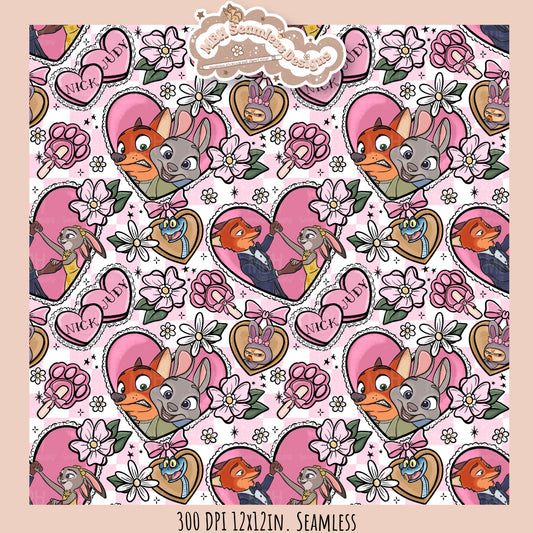 Nick & Judy Romance Seamless Pattern // PNG // Assorted Colorways