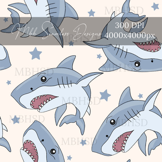 Blue Star Sharks Seamless Pattern