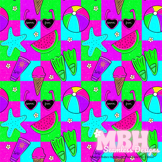 Checkered Summer Fun SAFE SWIM Seamless Pattern