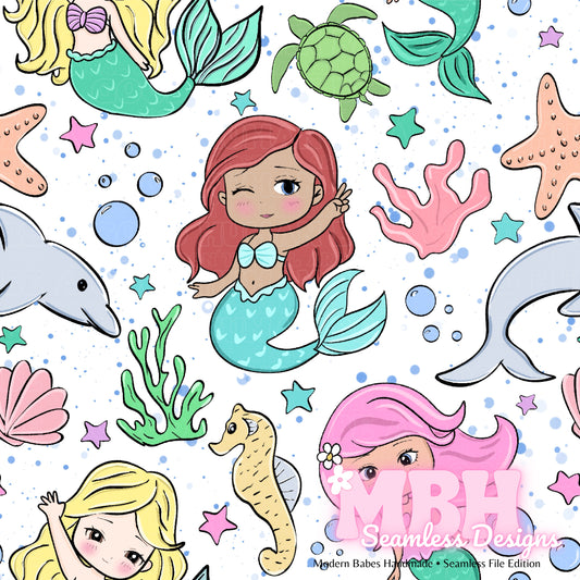 Chibi Mermaids Seamless Pattern MULTIPLE COLORWAYS