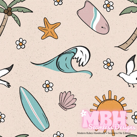 Girly Boho Surf Seamless Pattern MULTIPLE COLORWAYS