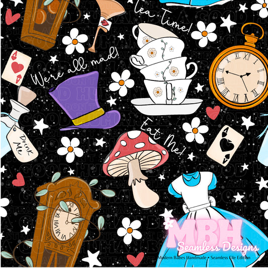 Alice In Wonderland Assorted Colorways Seamless Pattern