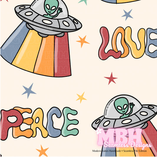 Alien Love and Peace ASSORTED COLORWAYS Seamless Pattern