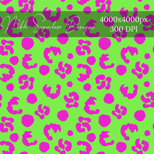 Neon Green Pink Leopard Seamless Pattern