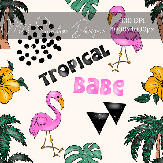 Tropical Babe Color Dots Flamingo Seamless Pattern