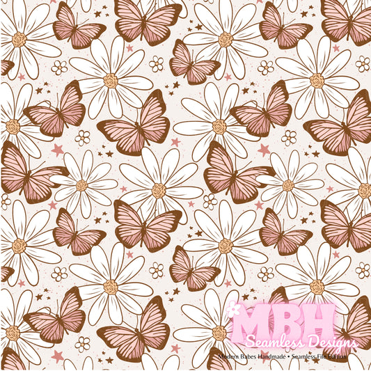 Mauve Pink Butterfly Floral ASSORTED COLORWAYS Seamless Pattern