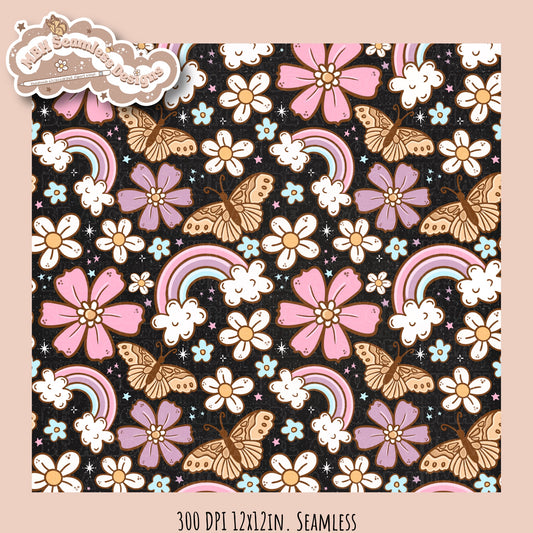 Rainbow Butterfly Floral Seamless Pattern • Multiple Colorways