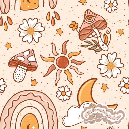 Boho Rainbow Shrooms Seamless Pattern // PNG • MULTIPLE COLORWAYS
