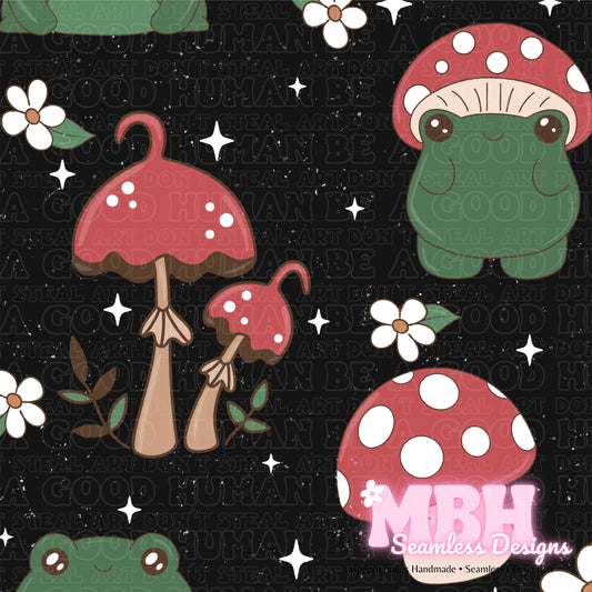 Cottagecore Toadstools Assorted Colorways Seamless Pattern