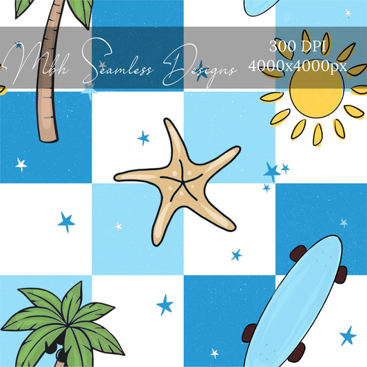 Beach Bum Sunny Palm Trees Dots Seamless Pattern