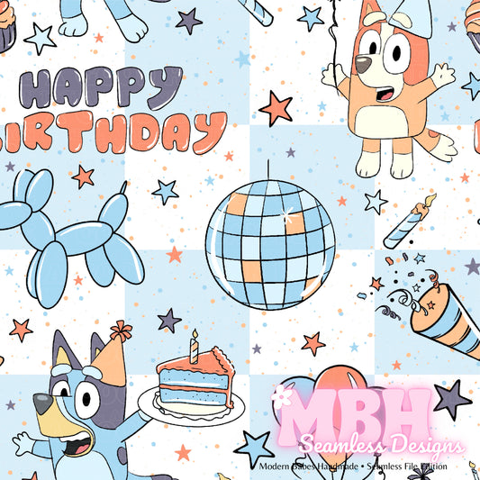 Heeler Disco Birthday CHECKERED Seamless Pattern