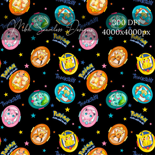 Midnight Starry Tamagotchi Pokeman Seamless Pattern