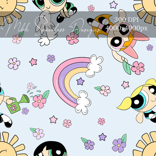 PPG BLUE Multidirectional Sunny Rainbow Floral Seamless Pattern