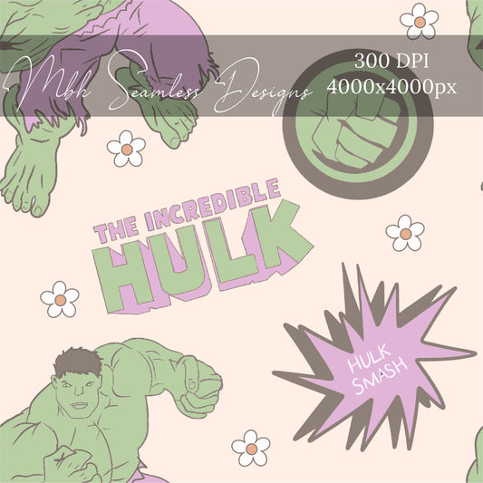 Boho Pink Hulk Daisies Superhero Seamless Pattern