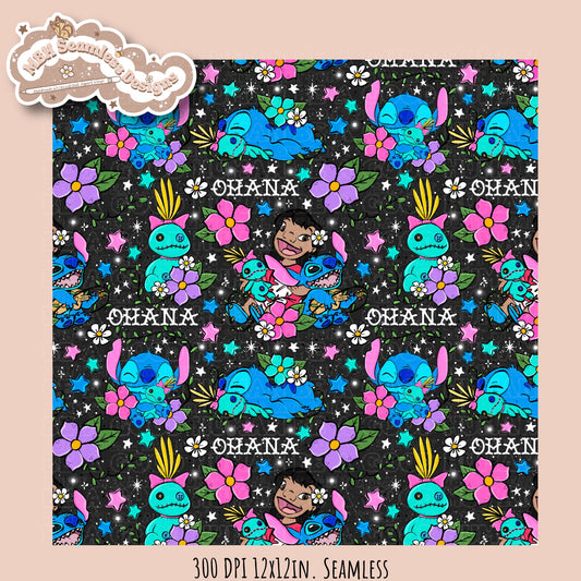 Lilo Stitch Summer Floral Seamless Pattern & PNG MULTIPLE COLORWAY OPTIONS