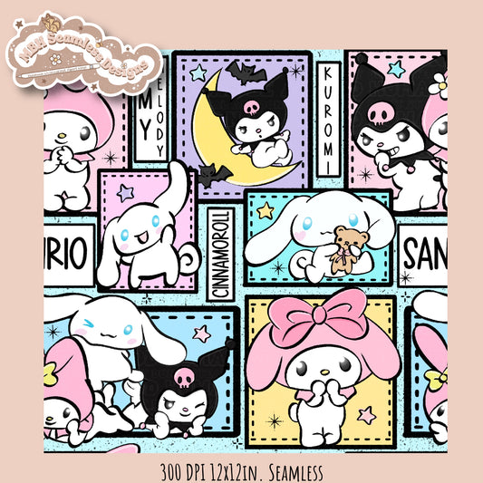 Sanrio Friends Patchwork Seamless Pattern•Multiple Colorways