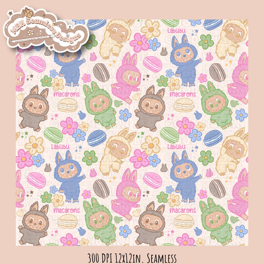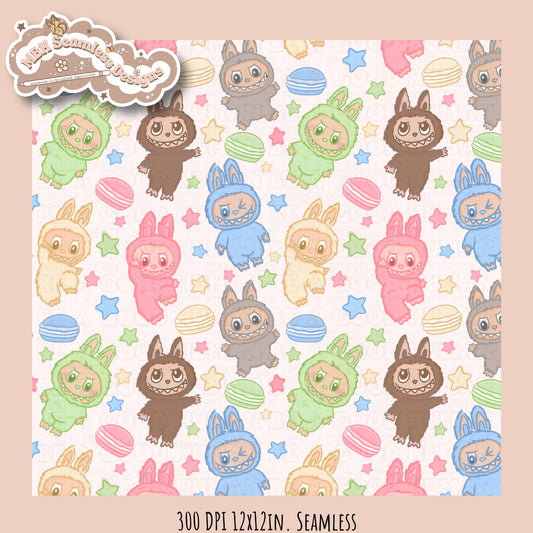 Labubu Macorons Seamless Pattern // PNGs •Assorted Colorway Options