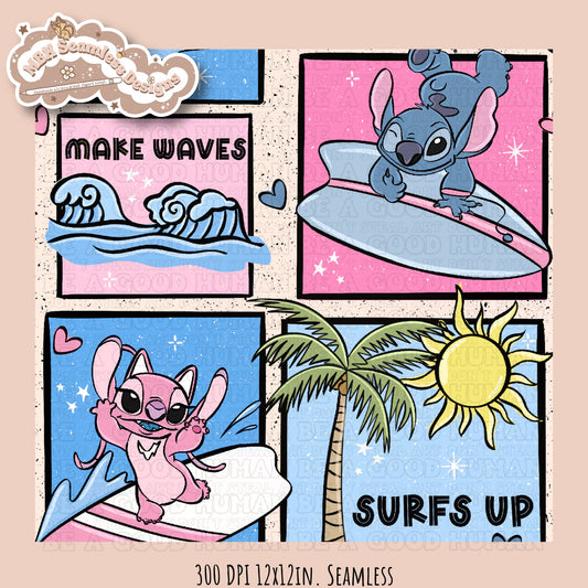 Angel & Stitch Surf Seamless Pattern•Multiple Colorway Options