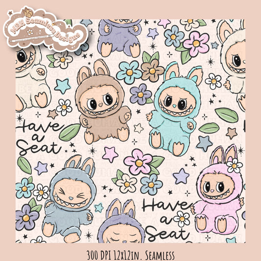 Labubu Have a Seat Seamless Pattern // PNGs • Assorted Colorway Options
