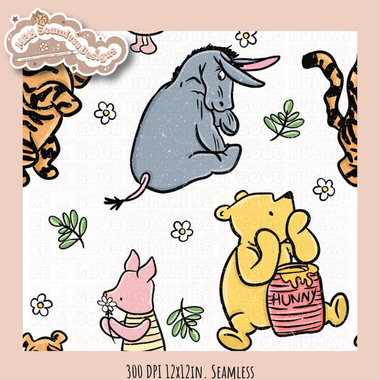 Vintage Pooh Bear Seamless Pattern • Assorted Colorway Options