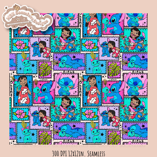 Lilo Stitch Beach Seamless Pattern & PNG MULTIPLE COLORWAY OPTIONS