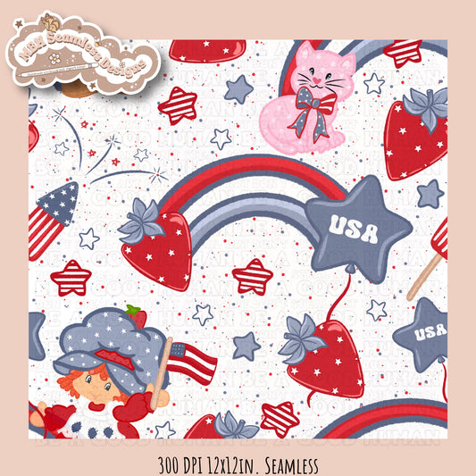 Strawberry Shortcake USA Seamless Pattern // PNG •Multiple Colorways