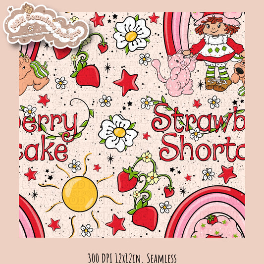 Rainbow Strawberry Shortcake Seamless Pattern // PNG • Multiple Colorway Options