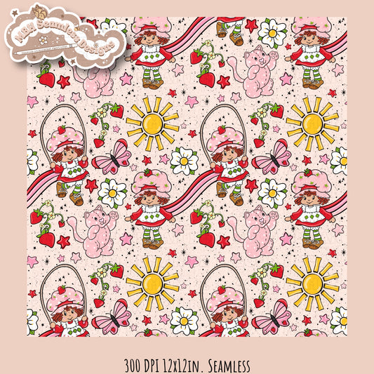 Strawberry Shortcake Valentine Seamless Pattern Multiple Colorways