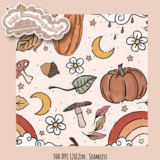 Boho Pumpkins Rainbow Shrooms Seamless Pattern MULTIPLE COLORWAYS