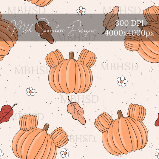Pumpkin Mouse Fall Seamless Pattern