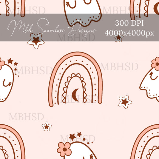 Boho Rainbow Ghosts Seamless Pattern