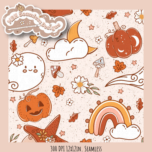 Boho Floral Pumpkin Ghost Seamless MULTIPLE COLORWAYS