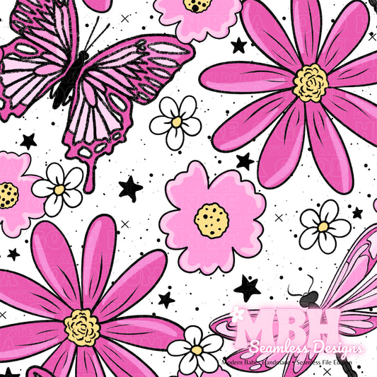 Pink Butterfly Dragonfly Floral Seamless Pattern MULTIPLE COLORWAYS