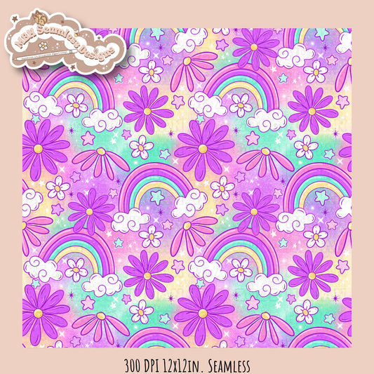Rainbow Floral Seamless Pattern • Multiple Colorway Options