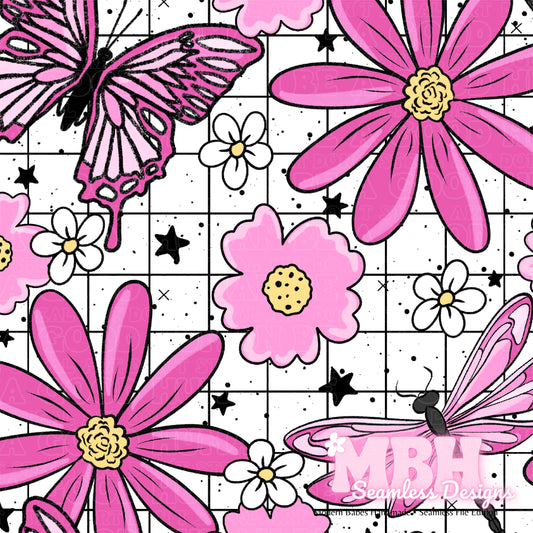 GRID Pink Butterfly Dragonfly Floral Seamless Pattern MULTIPLE COLORWAYS and COORDS