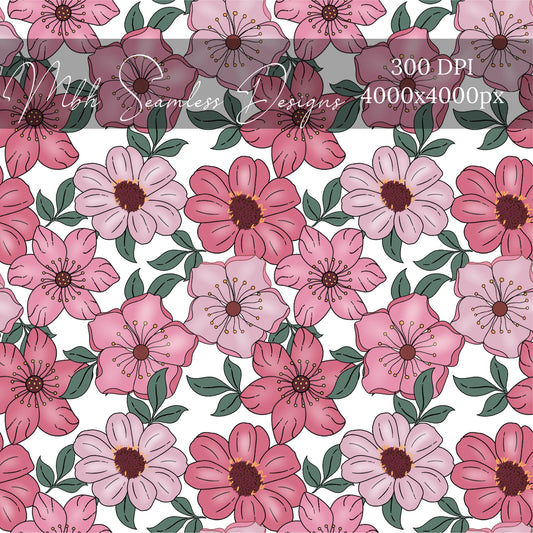 Pink Mauve Honeycomb Floral Seamless Pattern