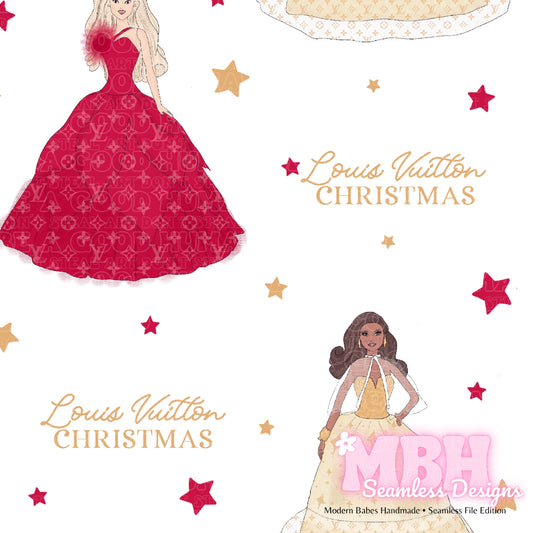 Starry Boujee Christmas Barbies Assorted Colorways Seamless Pattern
