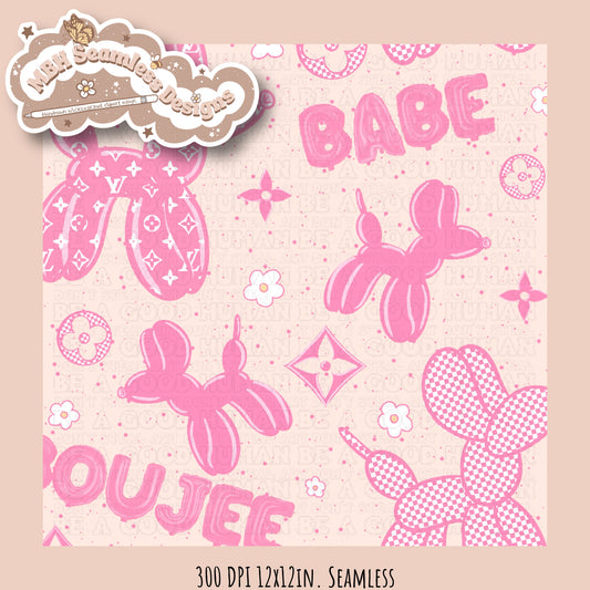 Pink Boujee Dog Balloons Seamless MULTIPLE COLORWAYS