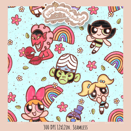 PPG Floral Rainbows Seamless Pattern // PNG // Assorted Colorway Options