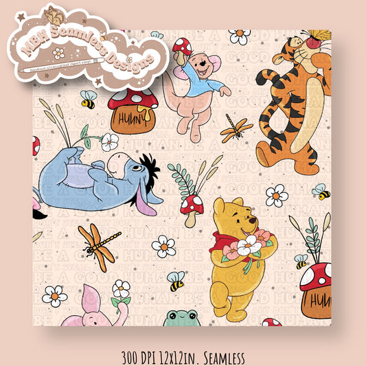 Cottagecore Pooh & Friends MULTIPLE COLORWAYS Seamless Pattern