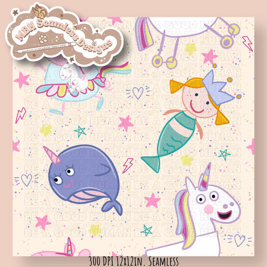 EXCLUSIVE (Not for Fabric Shops) Peppa Magical Friends Seamless Pattern