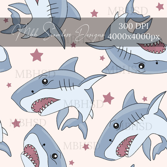 Red Star Sharks Seamless Pattern