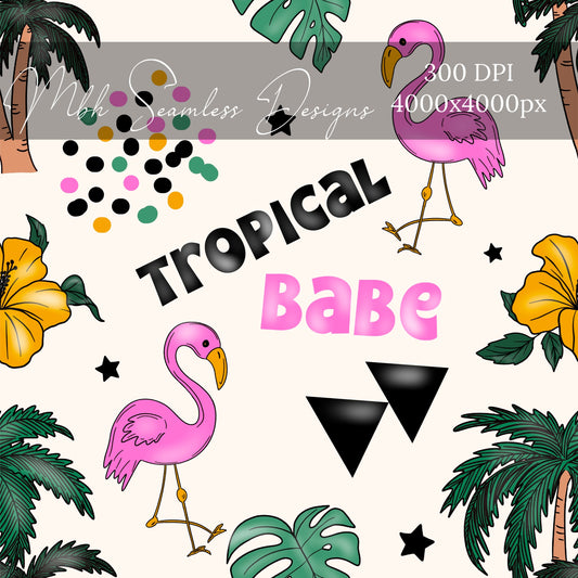 Tropical Babe Color Dots Flamingo Seamless Pattern